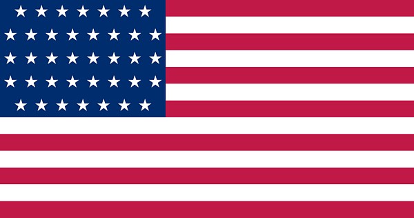 These are the official flags of the United States, known as the Naval Ensigns. There were also the different designs with the circles and other patterns of stars, flown by the individual states, but these are the official, Congressionally-authorized versions. Click on the thumbnail to see a larger image.