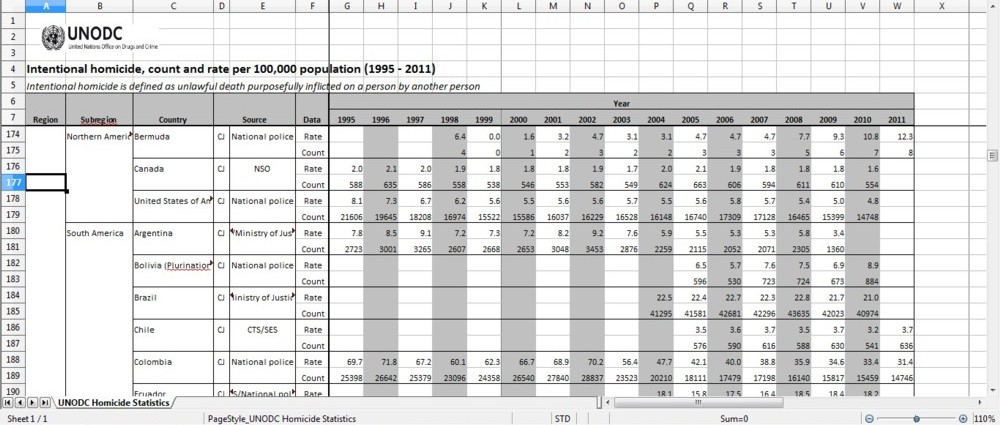 - UNODC(United Nations Office on Drugs and Crime) Homicide Statistics. unodc.org link